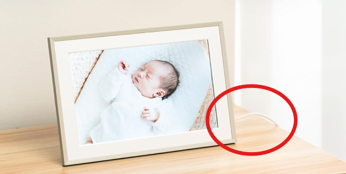 - 同梱の電源ケーブルを使用してフォトフレームの電源をつける