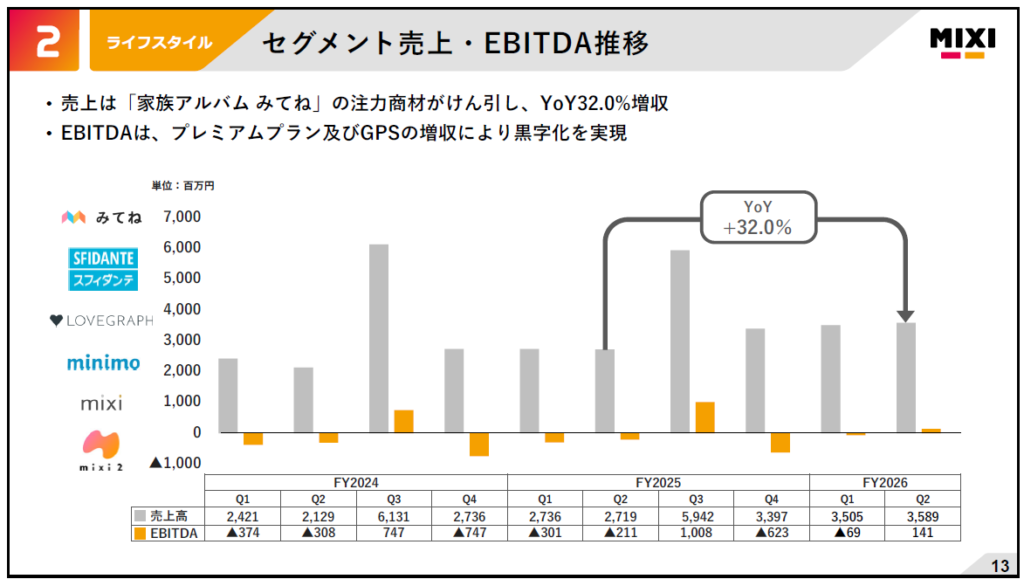 MIXI 2026年3月期第2四半期決算説明会資料より引用