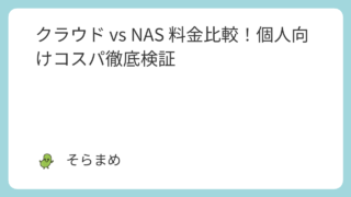 クラウド vs NAS 料金比較!個人向けコスパ徹底検証【2026年最新】 こんにちは、そらまめです!写真や動画が多くなってくると、スマホの容量が足りなくなりますよね……。容量を確保するためにはデータをスマホの外に保存する必要がでてきます。そんな時に選択肢として挙がるのが、以下の 2 つの方法です!クラウド(例:i... 2025.07.30 NASクラウド