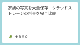家族の写真を大量保存!クラウドストレージの料金を完全比較【2026年最新】 こんにちは、そらまめです!子供が生まれてから、写真や動画を撮影する量が誇張抜きで100倍以上にはなりました。もともと、書類くらいしか撮影しておらず無機質の極みだったスマホのアルバムが、今では上から下まで子供の写真で埋まっています。そうなると... 2025.07.08 クラウド