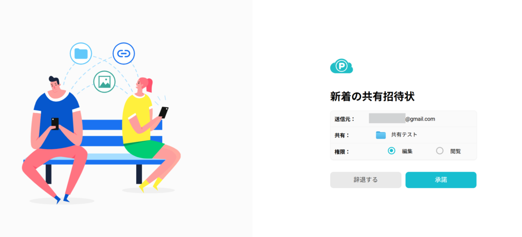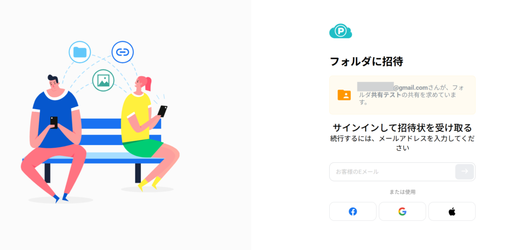 | 共有方法 | 共有リンクを作成して、共有したい相手に伝える。 | 共有したい相手を招待すると、相手の pCloud 内に共有フォルダが表示される。 |