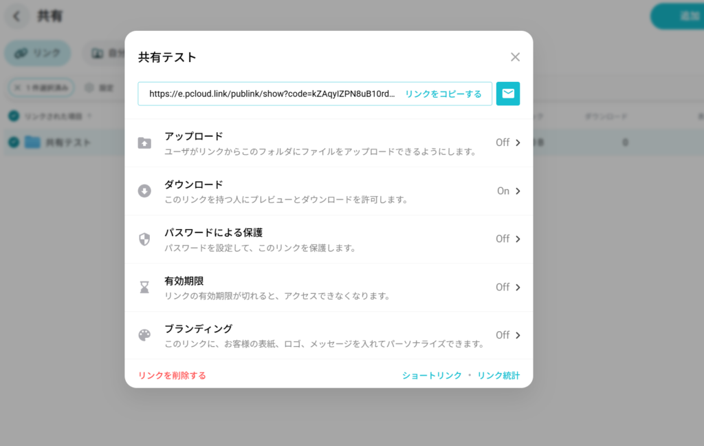 pCloud は画面の作りも素直で分かりやすいので、画面の指示通りに操作すれば簡単に共有できるのは良い点ですね。
