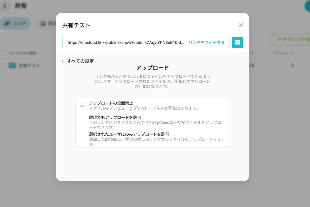 pCloud には、ファイルやフォルダを共有する方法が2種類あります。