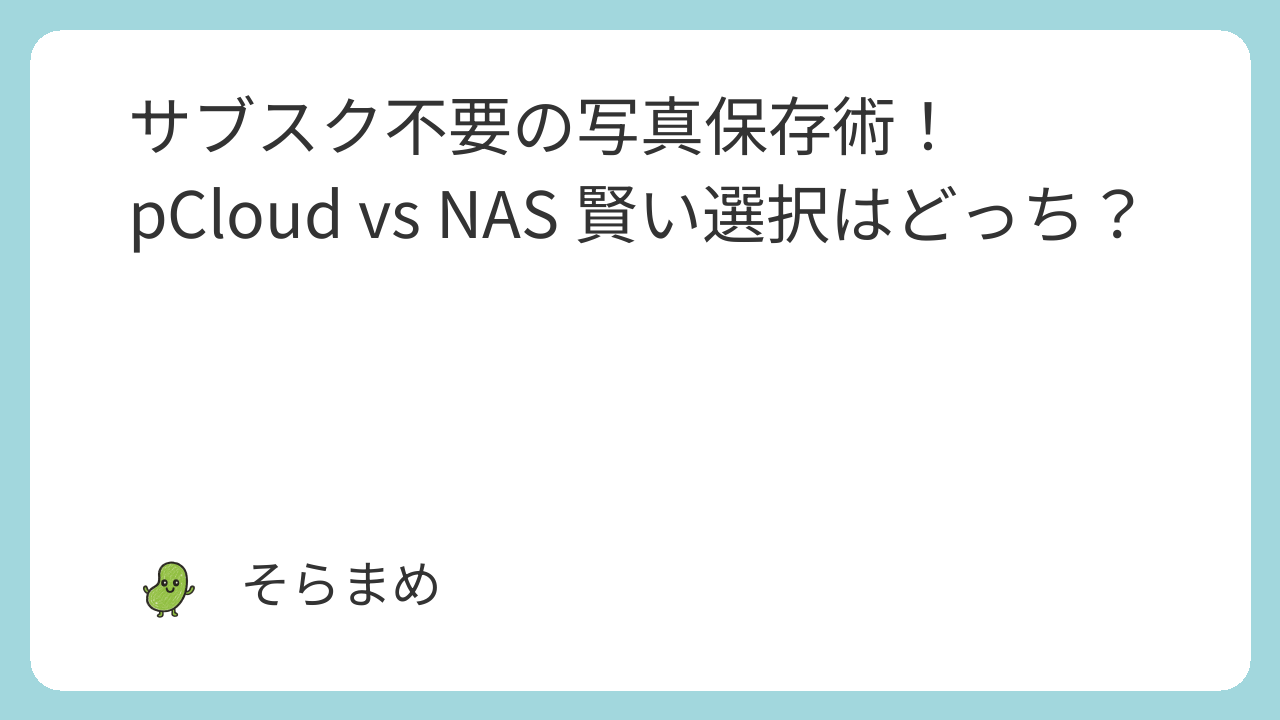 この記事では、同じく買い切りの自宅ストレージ(NAS)と pCloud を比較しながら、その特徴を分かりやすく解説していきます。