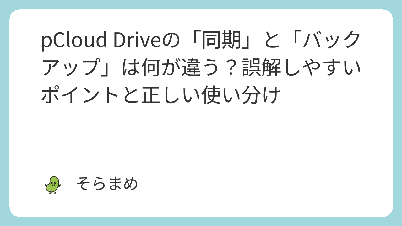 そこでこの記事では、pCloud Drive の「同期」と「バックアップ」の違いと、誤解しやすいポイントを詳しく解説していきます!